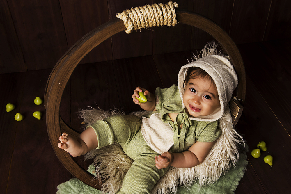Ensaio fotográfico de 9 meses, de acompanhamento trimestral de bebê, do Arthur, realizado em nosso home studio, localizado na cidade de Niterói/RJ.
