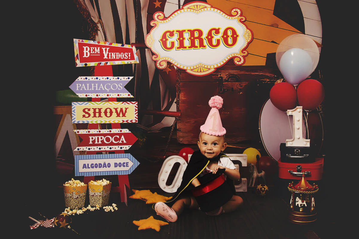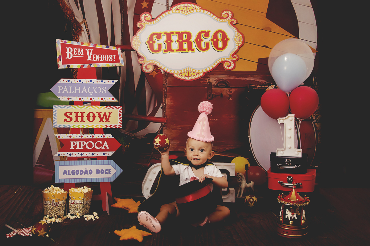 Ensaio fotográfico pré-aniversário da Larissa, tema Circo Tradicional, realizado em nosso home studio, localizado na cidade de Niterói/RJ.