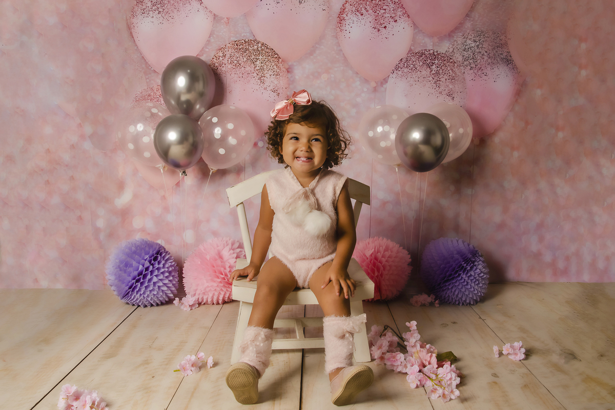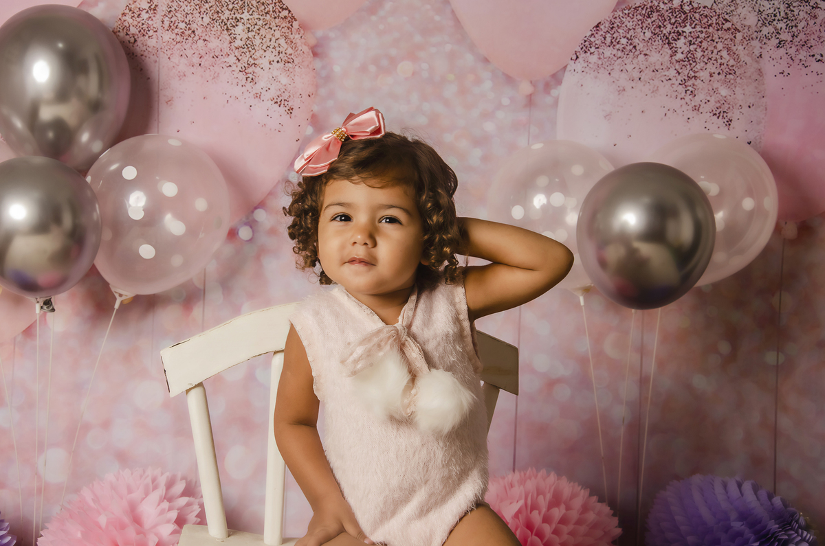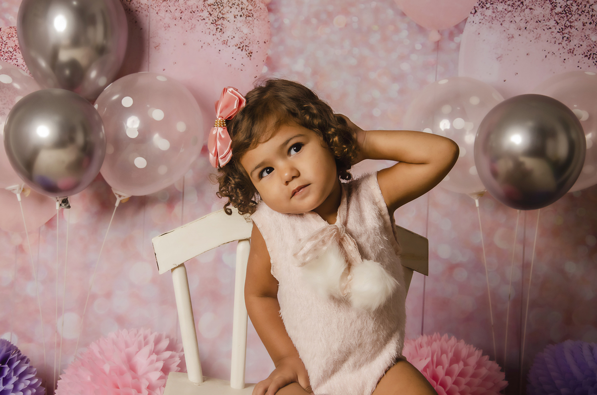 Ensaio fotográfico pré-aniversário da Laura, tema Balões, realizado em nosso home studio, localizado na cidade de Niterói/RJ.