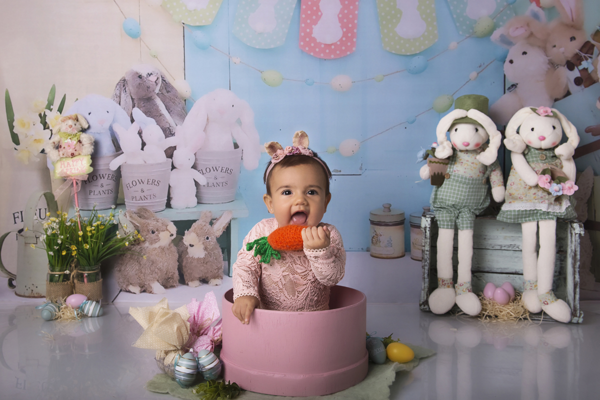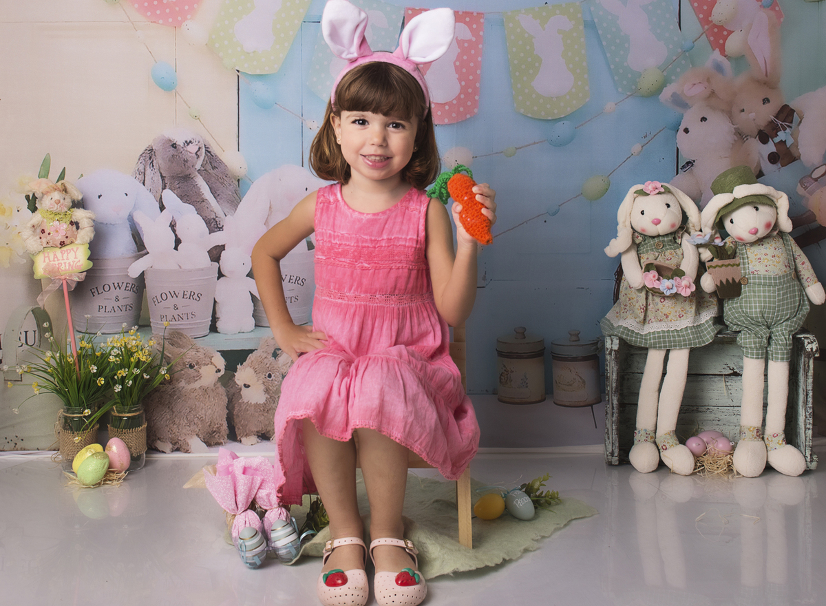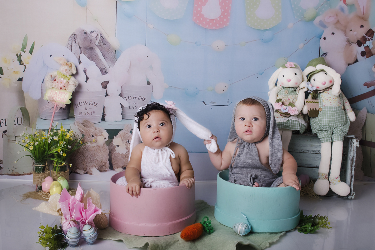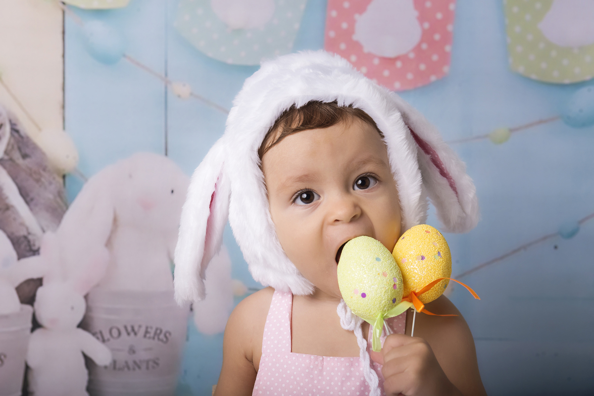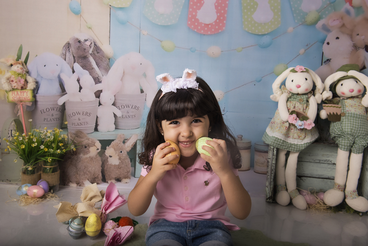 No miniensaio de Páscoa 2018 trouxemos a caracterização dos cenários através de dois pontos distintos de estética - candy color e rústico. Foram três lindos cenários, sendo um deles exclusivo: O bosque dos coelhinhos, Fábrica de ovinhos e Aldeia dos Coelhos.