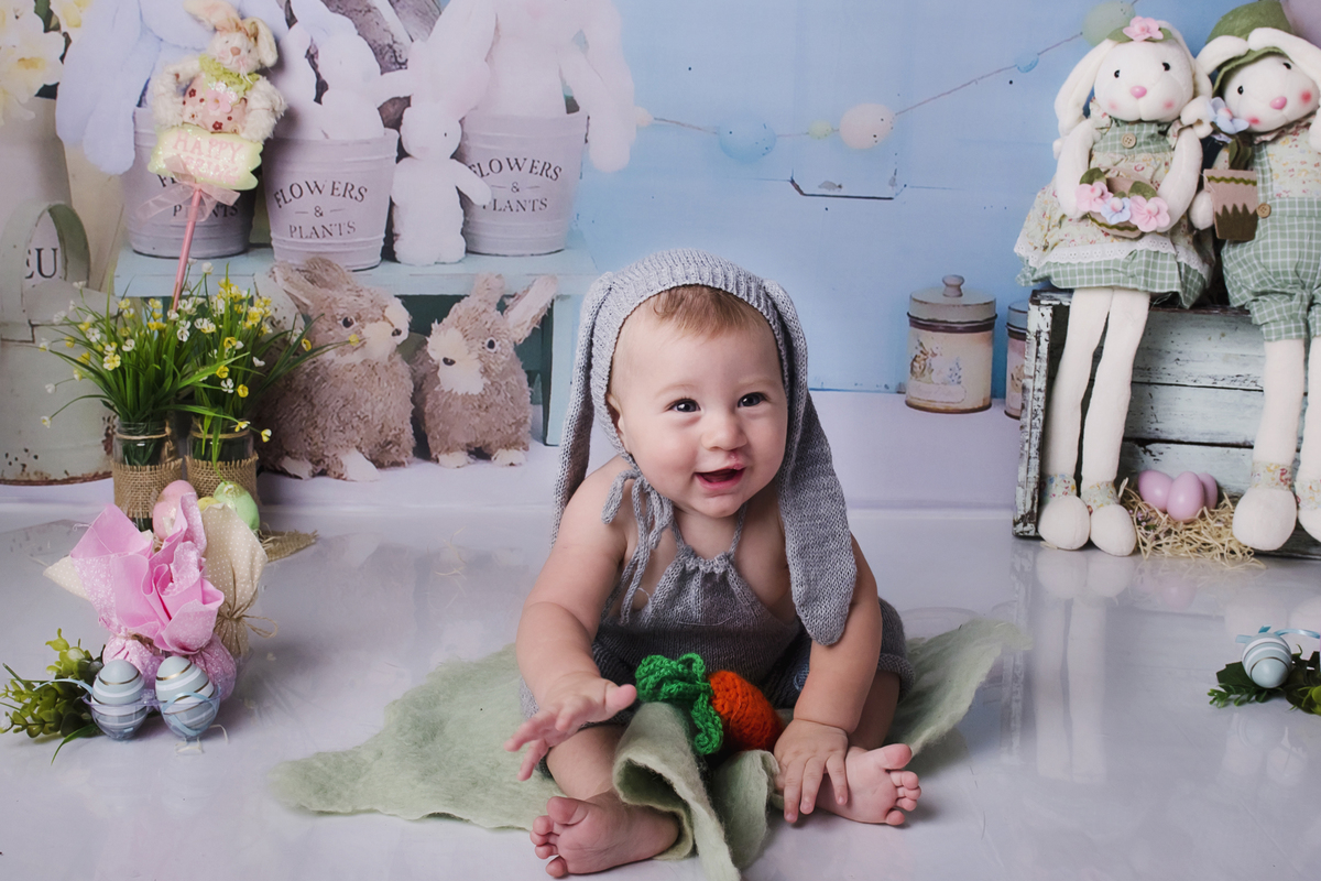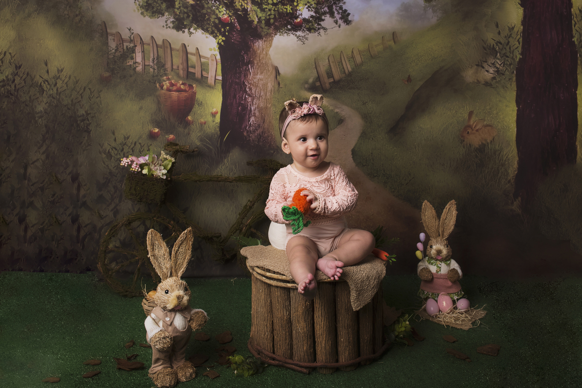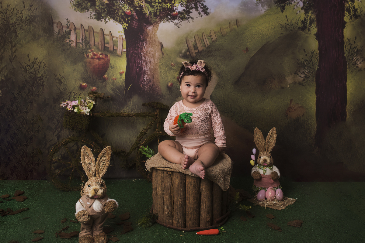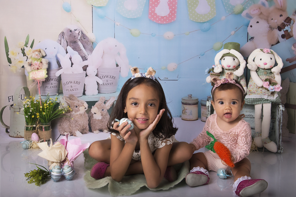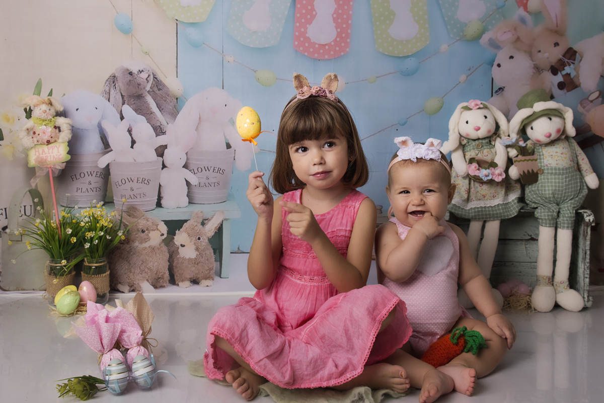 No miniensaio de Páscoa 2018 trouxemos a caracterização dos cenários através de dois pontos distintos de estética - candy color e rústico. Foram três lindos cenários, sendo um deles exclusivo: O bosque dos coelhinhos, Fábrica de ovinhos e Aldeia dos Coelhos.