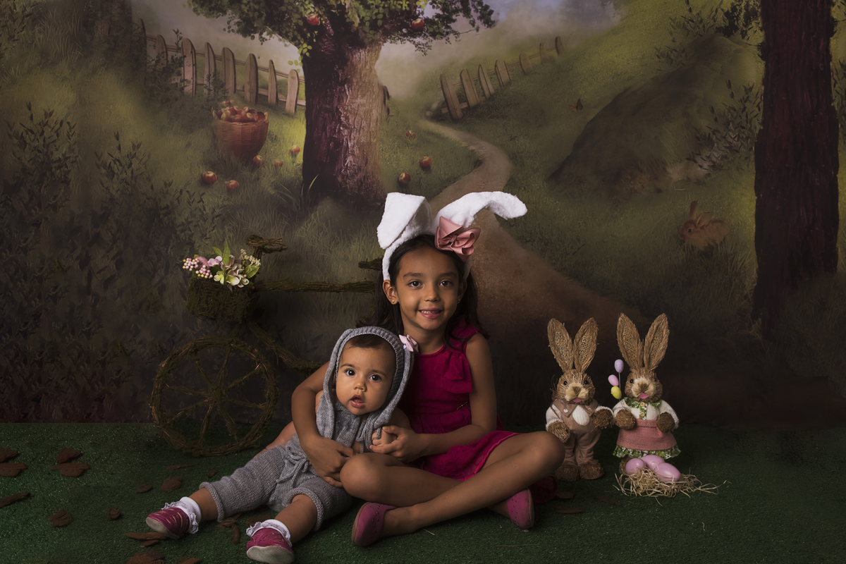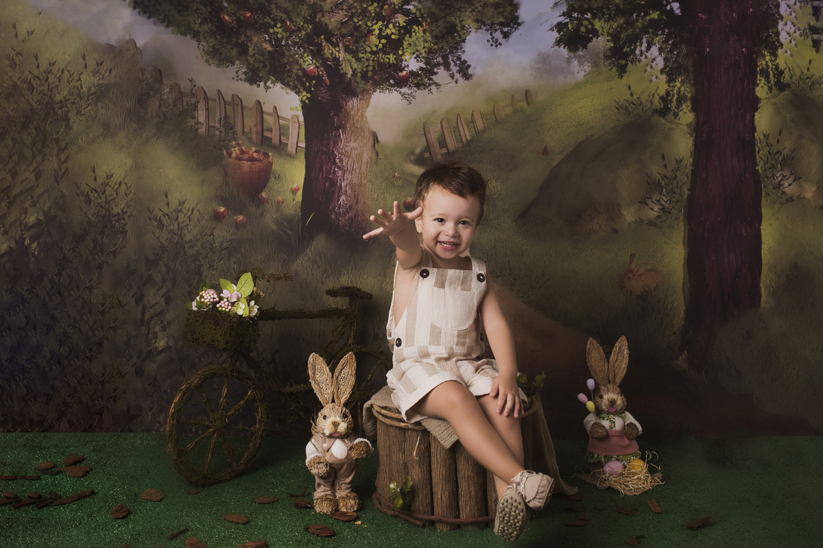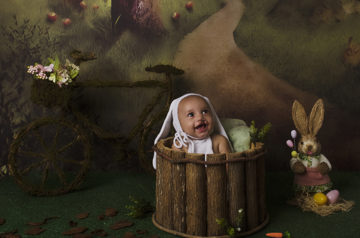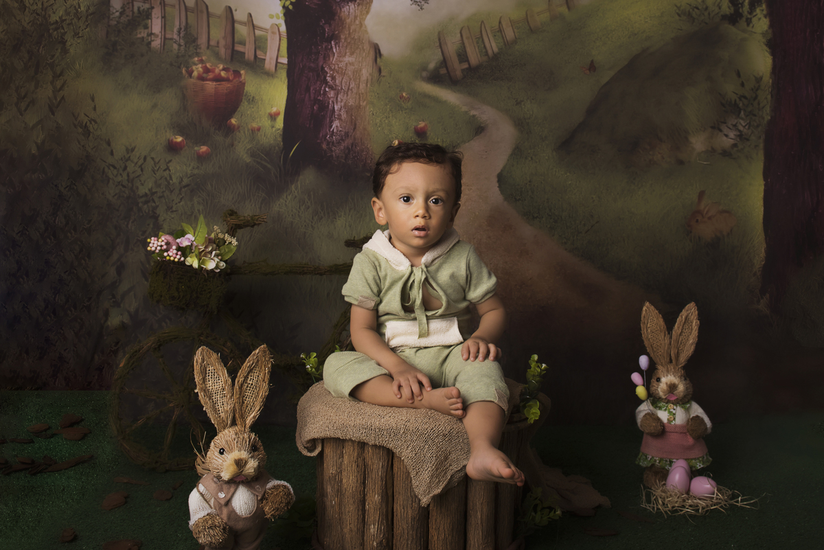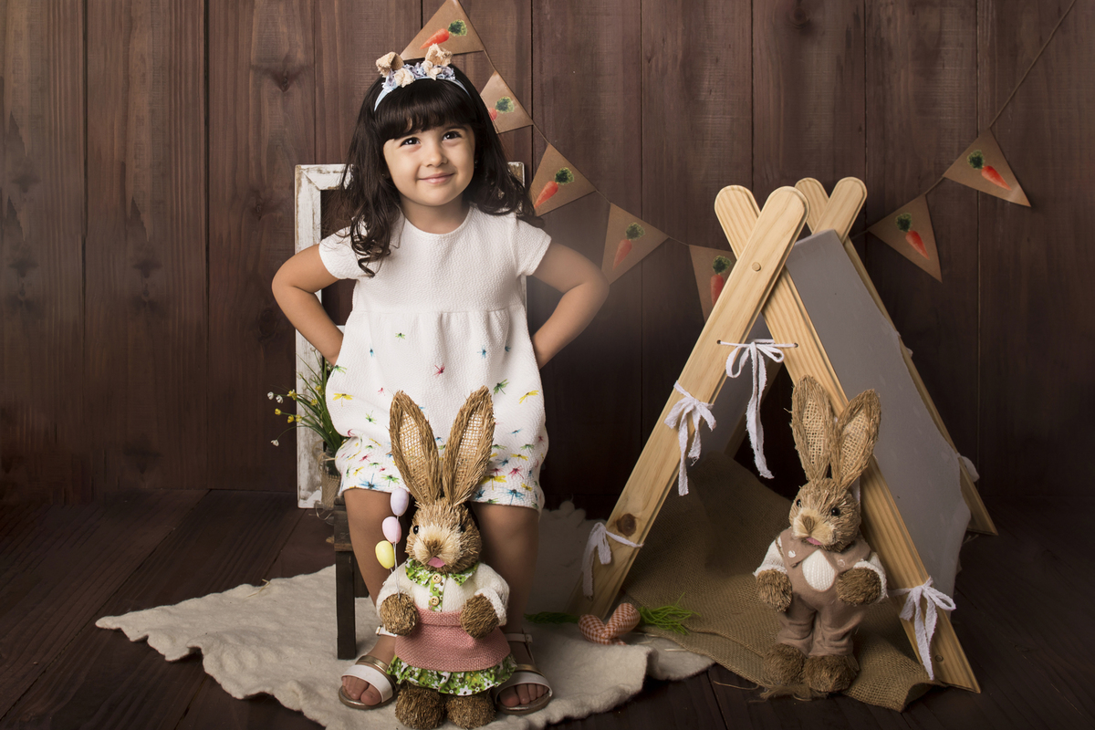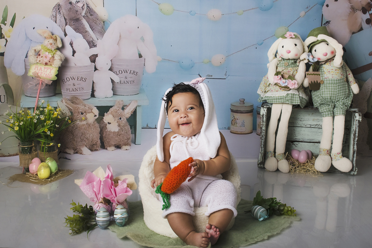 No miniensaio de Páscoa 2018 trouxemos a caracterização dos cenários através de dois pontos distintos de estética - candy color e rústico. Foram três lindos cenários, sendo um deles exclusivo: O bosque dos coelhinhos, Fábrica de ovinhos e Aldeia dos Coelhos.