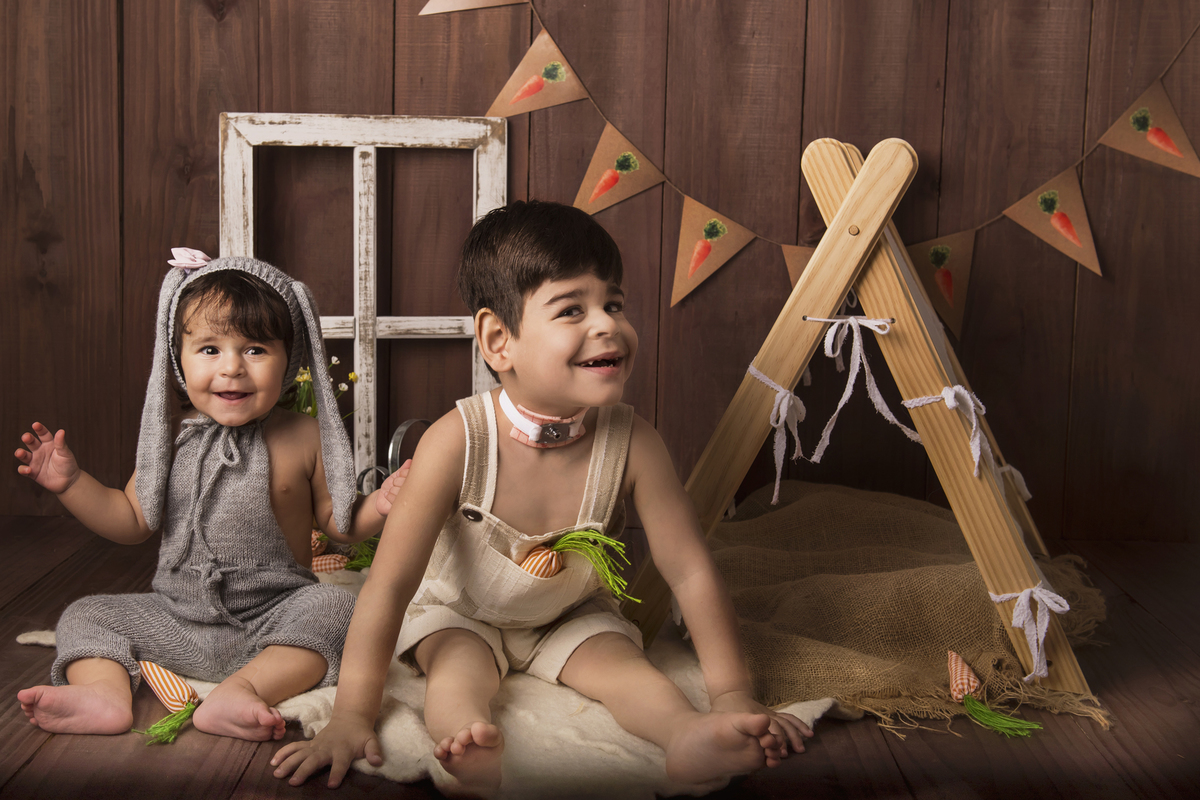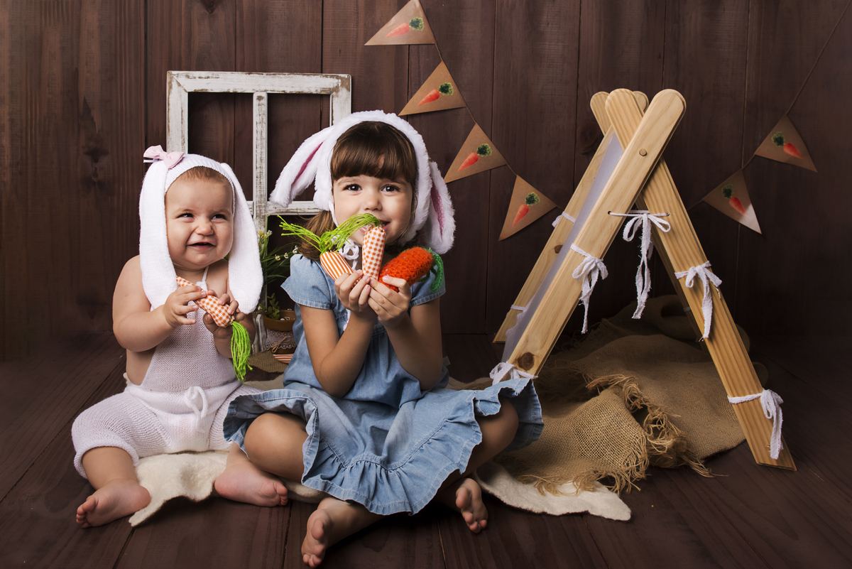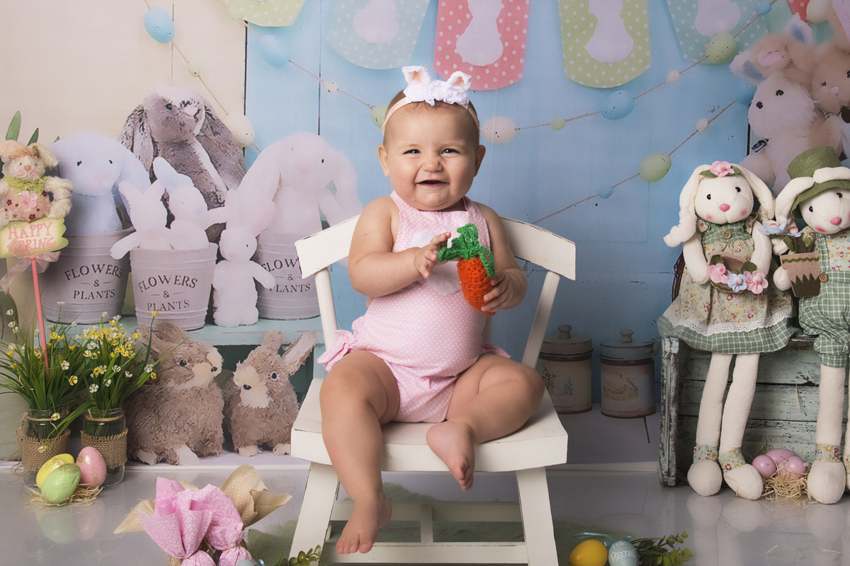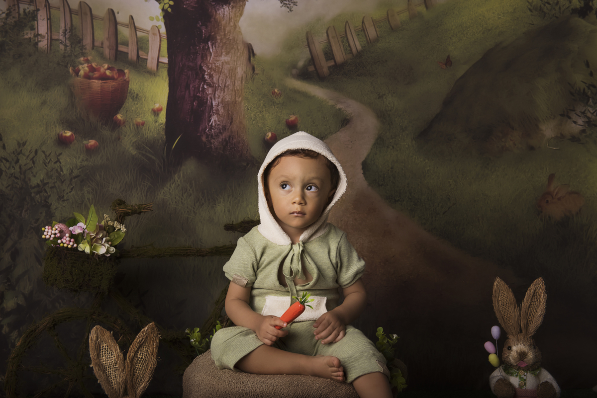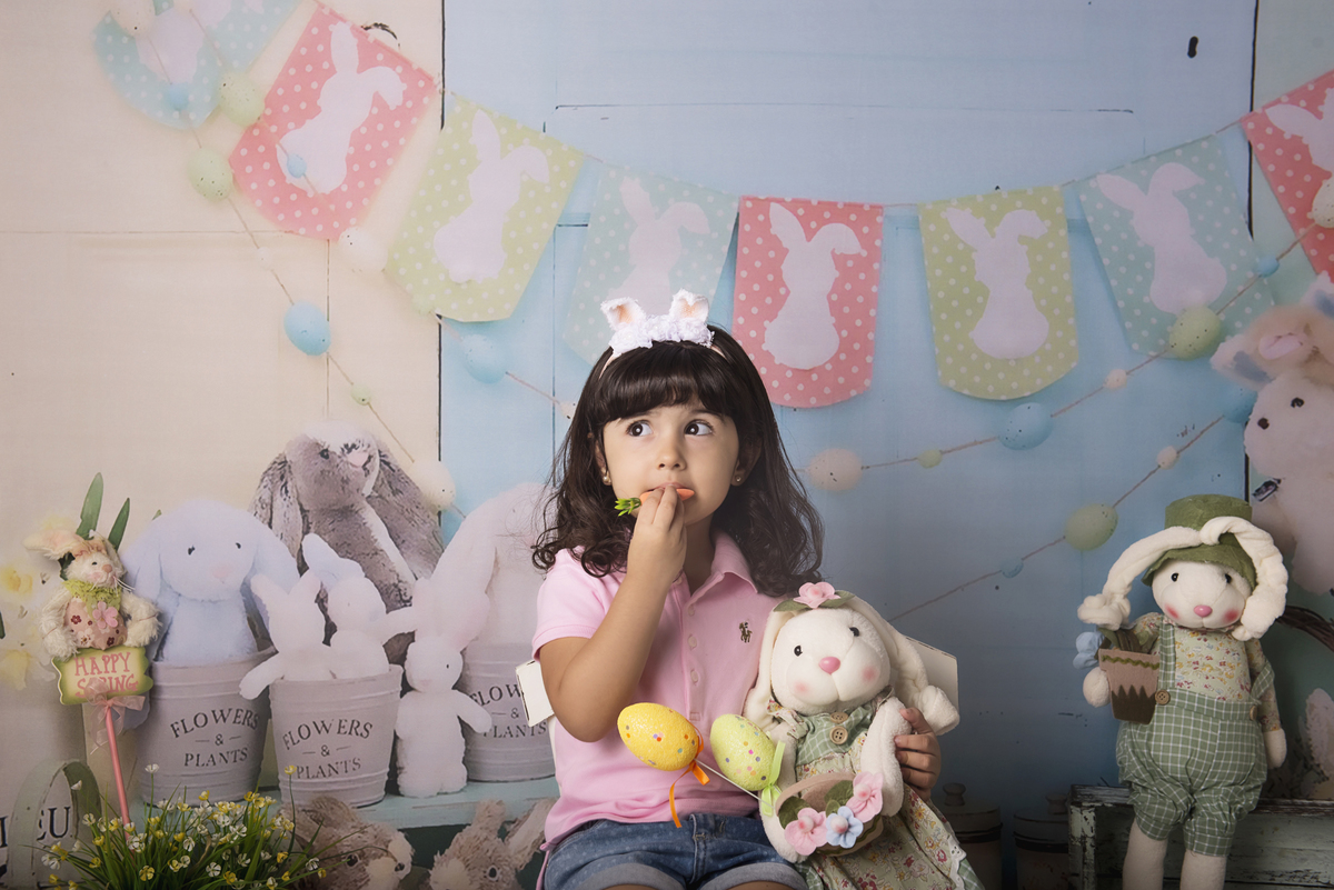 No miniensaio de Páscoa 2018 trouxemos a caracterização dos cenários através de dois pontos distintos de estética - candy color e rústico. Foram três lindos cenários, sendo um deles exclusivo: O bosque dos coelhinhos, Fábrica de ovinhos e Aldeia dos Coelhos.